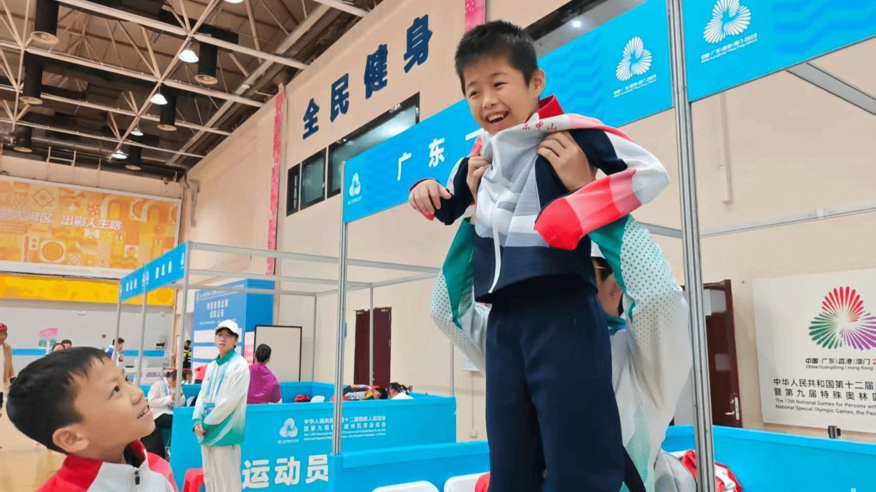172025.12在中山火炬高新區國際會展中心舉行的殘特奧會特奧輪滑項目現場,活躍著來自我校的近200名青年志愿者“小海豚”。在速度比拼的賽場外,他們為每一位運動員提供細致的服務和幫助,從陌生到信任,“小海豚”們用青年大學生特有的敏銳與細膩,讓每個可愛的特奧運動員都能被聽見、被看見、被尊重、被珍視…