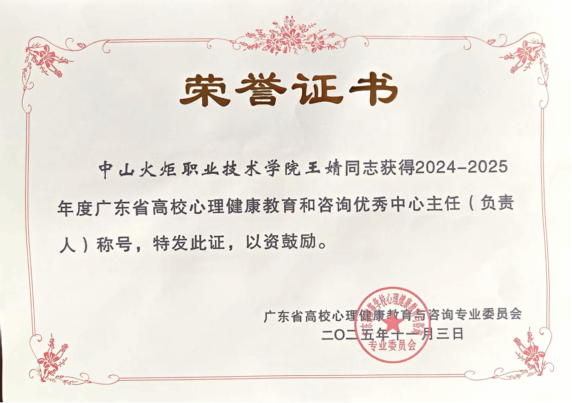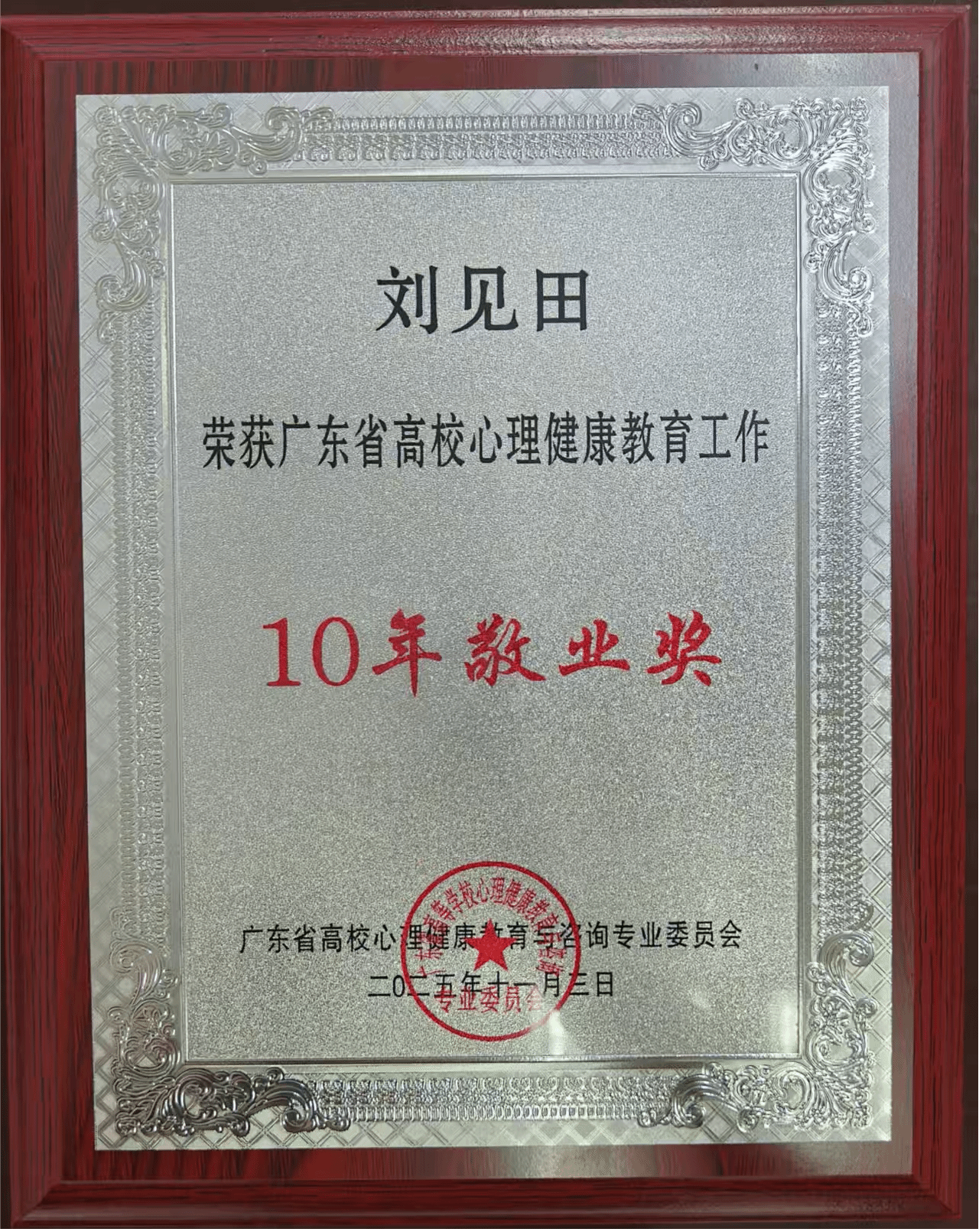 【廣東高校心理健康教育工作10年敬業獎】