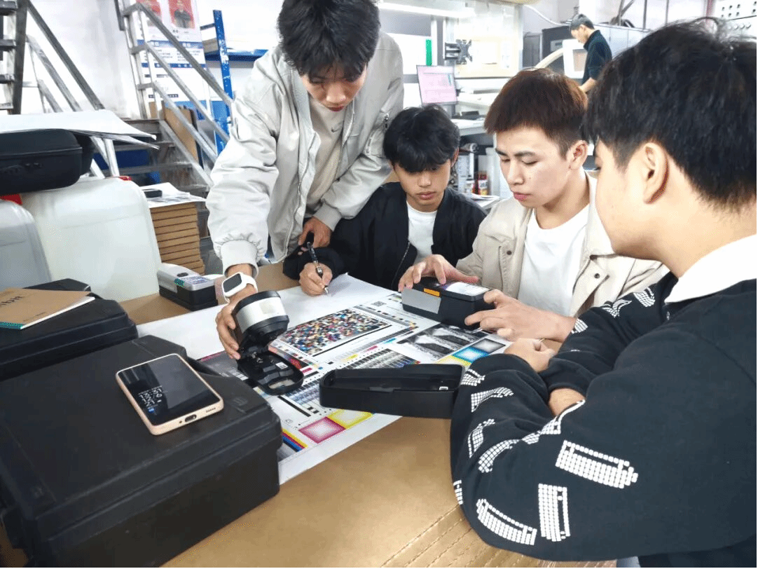 為打破印刷技術理論與工業生產實踐的壁壘,強化學生色彩控制核心技能,近日,我校包裝設計學院印刷媒體技術專業組織了一場以“標準化色彩管理流程”為主題的實操實訓,在色彩管理專家鄭華智老師帶領下,同學們走進我校合作企業——中山市藝龍彩印包裝科技有限公司(簡稱“藝龍彩印”),開啟理論與實踐深度融合的學習之旅。