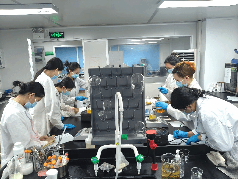 這種“專兼結合”的教學團隊,指導老師不僅講授專業理論課,還利用真實的產品或研發中的半成品,帶著學生進行檢測、試驗、制作,通過“傳、幫、帶”將實踐經驗和工匠精神傳遞給學生,指導學生的學習和實踐以美妝產業企業前沿的技術為主,內容更加“真、新、精”,學生在此過程中逐步成長為“強理論、懂技術、愛動手、有志向”的美妝技術人才。