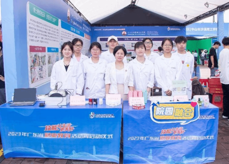 【柳瀅春(前中)與學生團隊參加廣東省職業教育活動周現場展示活動】