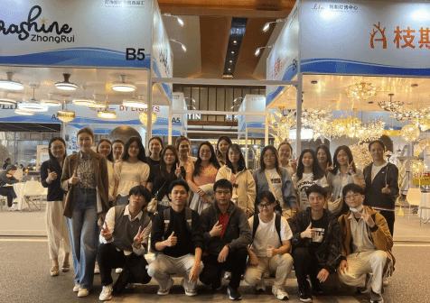 一進入展館,留學生們便被眼前流光溢彩、設計紛呈的燈飾世界所震撼。從典雅復古的中式宮燈和花燈到極簡現代的智能燈具,從璀璨奪目的水晶吊燈到充滿創意的氛圍照明燈,數以萬計的展品令人目不暇接。同學們興奮地穿梭于各個展位之間,用手機記錄下心儀的設計,并不時與參展商交流,了解產品的材質、工藝與設計理念。留學生們對中國傳統的花燈、智能家居照明和綠色環保的太陽能照明表現出濃厚興趣,并對“中國智造”有了全新的認識。