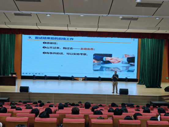 雷玉良老師擁有15年大型上市公司HR管理實戰經驗,累計開展30余場就業指導講座,助力超2000名學子成功求職。其授課風格突出“實戰、實用、實效”,擅長以企業真實案例傳授“學完就能用”的求職技能,深受學生好評。講座過程中,同學們專注聆聽,不時提筆記錄重點,當雷老師講到簡歷制作的實用技巧時,現場傳來陣陣“太實用了,這下知道簡歷該怎么改了”的小聲贊嘆。雷老師圍繞就業觀念、簡歷制作、招聘平臺選擇、面試技巧、就業協議簽訂及就職初期職業規劃展開講解,強調“量力而行、精準定位、主動求職”,鼓勵打破崗位局限擁抱多元就業;指導用STAR法則量化經歷打造“人崗適配”簡歷,提醒面試做好雙向準備展現自信;還講解了就業協議簽訂注意事項,并強調工作前五年以積累經驗、提升能力為核心,做到“專業可不對口,但能力必須匹配”。不少同學表示“老師講的面試技巧很接地氣,解決了我之前面試緊張的問題”。
