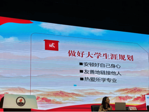 楊書記從要堅定政治信仰、要樹立職業理想、要踐行社會責任三個方面詳細闡述了大學生要堅定理想信念。青年的理想信念關乎國家未來,理想信念是我們人生的燈塔,為我們指引前行的方向。大學生作為新時代的主力軍,肩負著實現中華民族偉大復興的重任,樹立正確的理想信念至關重要。在專業上,通過扎實學習專業知識、積極參加實踐活動、參與行業競賽等方式,提升自己的專業素養和綜合能力,為未來的職業發展打下堅實基礎。大學生不僅是知識的學習者,更是社會責任的擔當者。同時,楊書記以往屆畢業生的優秀事跡為例,生動講述往屆優秀師兄師姐的奮斗經歷,激勵同學們在實現中國夢的實踐中放飛青春夢想。同時,楊書記從安頓好自己身心、友善地鏈接他人、熱愛所學專業三個方面提醒同學們做好大學規劃,希望同學們仰望星空腳踏實地,追夢而行!