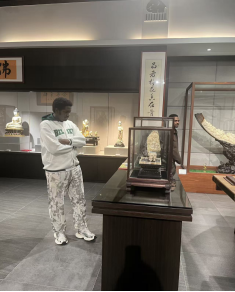 在隨后的展廳觀摩環節,留學生們步入藝術館核心展區。長達4.88米的猛犸象牙原材令人震撼,《玲瓏球》《五百羅漢——靈山法會》等金獎作品更引人駐足細賞。通過這些實物與佳作,留學生們切身感受到南派猛犸牙雕技藝的精湛與文化的深厚內涵。